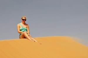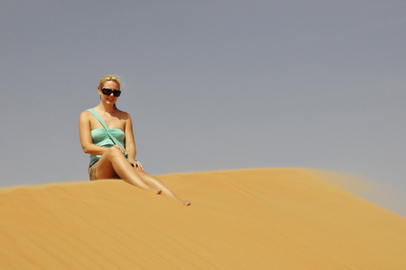 the poolFinally you make it to the turn-off to the resort, which is 10-12 kilometers of just sandy, gravely, unpaved road. it’s not bad, you can do it without a 4×4 (I just have a lil Mercedes C230 hatchback) and you’ll feel every bump but you’ll make it there in the end (after about 30 minutes of careful maneuvering). This is where the landscape really starts to become awesome, as you’re driving right through the massive dunes. …Except for the one part where you drive past a huge cement or gravel (?) factory which was a bit of a moment ruiner.