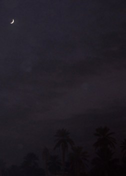 eid crescent moon over nizwaA very toasty Eid al-Fitr (the festival/holiday that marks the end of Ramadan) was spent in Oman this year. We decided to break-in (although hopefully not break-break) the SUV in the country’s wadis and mountains, although some time was spent in Muscat, too. And also hoped it would be cooler in said areas. It was not. Cannot wait for summer weather to be over. Hopefully by early or mid-October we’ll have some weather you can spend time outdoors in comfortably…