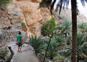 miraculously, water fell from the skyOn the way back to Nizwa from Jabal Shams, we decided to stop by a couple other locations to take in the scenery – Misfat Al Abryeen, the oldest village in Oman, clinging to a mountainside with terraces of date palms…