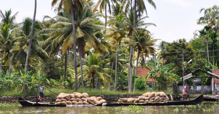 a rice barge on Alleppey’s backwatersThankfully we didn’t really come to Alleppey to experience it. Our intention was to spend a day/night on a houseboat and tour the backwaters and then get out immediately after the backwater tour. I can’t find much to say on the backwater tour. Everywhere you read that the houseboats tours are the can’t-miss thing to do in Kerala. And while it was certainly good, I wonder if there wasn’t perhaps a better way to really explore the backwaters? The 1-bedroom houseboat was nice, but don’t come looking for luxury (although I think in some of the bigger 4 or 5+ bedroom models the lux factor is heightened). It was certainly a relaxing way to spend 22 hours (check in ~11:30am; check out ~9:30am) – just moseying along slow waterways covered by far-reaching palm trees. Passing by little villages and watching the daily life go on there, such as clothes-washing and bathing in the murky waters (clean!) that was seriously full of prehistoric-sized prawns (terrifying!). Drinking some booze, eating some freshy-prepared curry. There wasn’t much you could complain about.