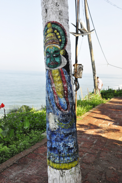 tree decor, VarkalaAnother somewhat less-than-enjoyable journey. No air conditioning (not a shock), no available seats, breathing 99% fumes & 1% oxygen (from this evening I lost my voice for a couple days and I mostly blame this fume-breathing), a few more games of chicken over the next few hours. After which we jumped into the most annoying autorickshaw ever to make it the rest of the way to Varkala beach. If you get in an autorickshaw and you want him to take you to somewhere to find accommodation, don’t let him know that you’ve yet to book a place. You will rue the day. Simply pretend you’ve booked “x” hotel and just have him take you there. These people apparently get commission from certain hotels if they drop you off there and you book a room, so if they realize you’ve not yet booked a place, you will be incessantly hassled to stay somewhere they get commission until you pretty much have to start screaming at the driver to shut up, turn around, and drive to where you want them to.