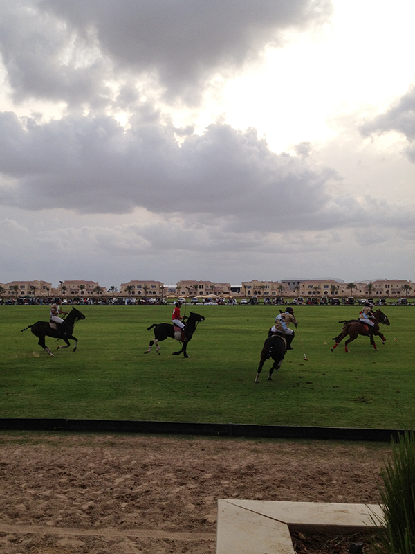 This weekend, I finally got around to taking advantage of our friendly neighborhood polo grounds (the most expat-y thing that has ever come out of my mouth?). And, lo, it was good. With it being the last weekend in Dubai before heading north to too-cold-for-me England for the holidays, it was a good idea to take advantage of some outdoor weather. Except, it ended up being properly chilly here (high 70s only) and we had lots of weather happening that day (overcast and windy, can you imagine?).