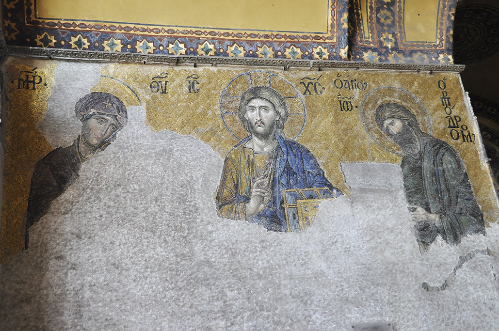 I want one of those Byzantine halo crowns for my headWhen converted to a mosque in the 1400s, the Christian mosaics and frescos were painted or plastered over, but when becoming a museum in the 1930’s the Christian aspects were restored alongside the Islamic. It’s quite interesting to walk through the structure and see Christian and Islamic art side by side, and sometimes on top of each other in cases where frescos had been painted over with Islamic designs.