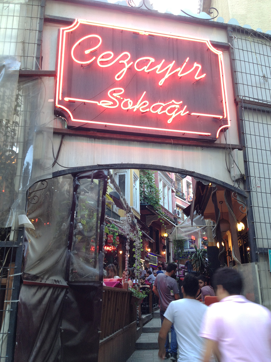 Busy Istiklal Cadessi would only get busierThat evening we attempted another stroll down Istiklal only to find, not surprisingly, that it was probably twice as crowded with people as before. Wanting somewhere a bit more peaceful to relax for the evening, we retreated to a cute street we had noticed near our hotel, called Cezayir Sokagi. It was a steep, thin (pedestrian-only) street lined with grape vines and cafes and exactly the sort of thing I like to find when I’m traveling outside of Dubai, because it is so unlike anything I can find here.