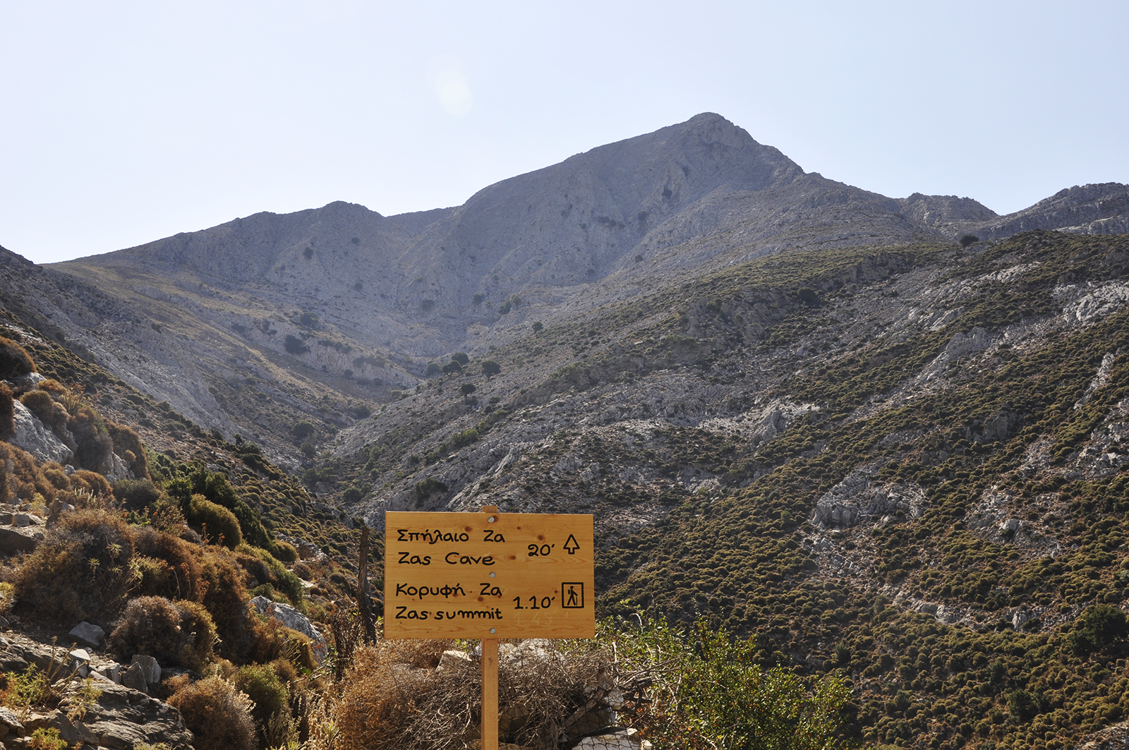 Start of the trail to Mount Zeus at Aria Springs.Heading up to Mount Zeus (Mt. Zas) and scoping out the Cave of Zeus was definitely a priority. Mount Zeus, the highest peak in the Cyclades, tops off at 1,004 meters, and a somewhat strenuous hike, but the Cave of Zeus, on the way up, is much easier to reach. Following the road from the interior village of Filoti, you’ll drive a bit of a ways up the mountain, before the road ends at Aria Springs and you’re left to get to steppin’. The Cave of Zeus is not terribly far form where the road ends, but it is not always a simple stroll. While you are first lead along the mountain on a stone path, that soon comes to and end and leaves you to scramble up large rocks and through thorny bushes to finally get to the cave. You should get there in under 30 minutes, and once reaching it, you’ll simply see a door-shaped entrance in the mountainside. The cave itself may be quite remarkable, but I couldn’t tell you. It’s very dark inside (obviously, it’s a goddamned cave) and we did not think to bring any sort of flashlights. And your iPhone or Blackberry screen isn’t a good substitute. It’s very cool inside the cave though; a good chance for a breather if you decide to keep on going to the mountain’s summit, as we did.