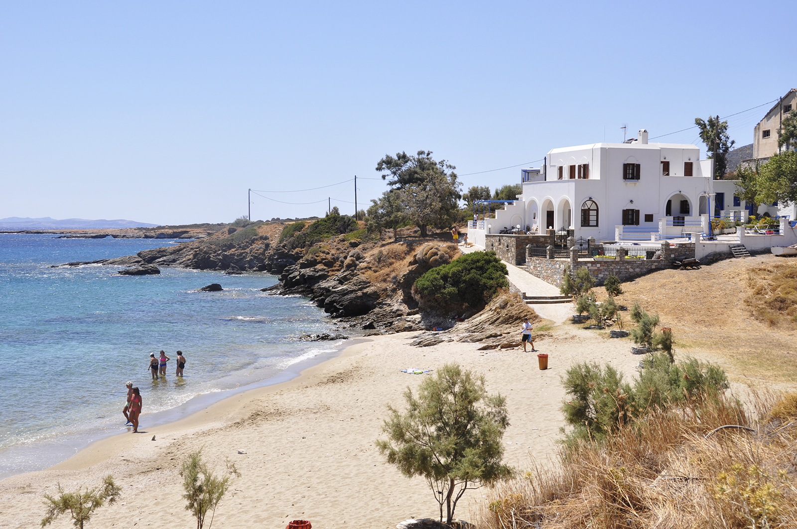ApollonasApollonas: This beach and fishing village is located on the northern tip of Naxos, and moderately busy. The white sand beach is lined with a handful of tavernas. Up the hill and across the main road from the beach you can visit an old marble quarry, where a kouros of Dionysus or Apollo can be seen.