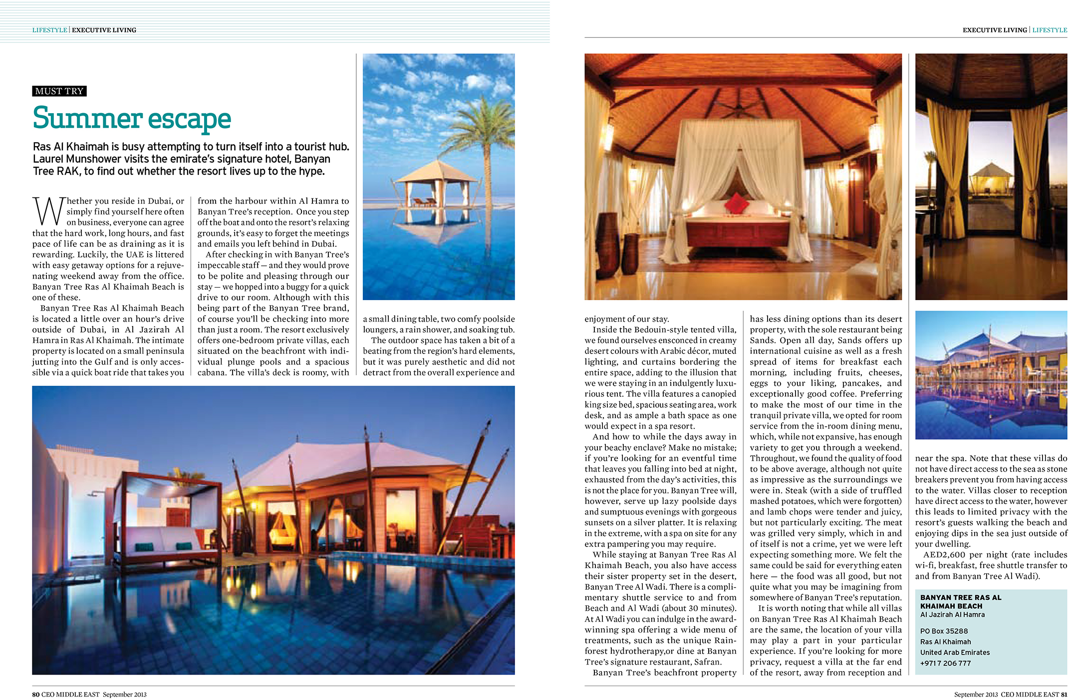 My review of Banyan Tree RAK, as published in CEO Middle East magazine, September 2013 issue.