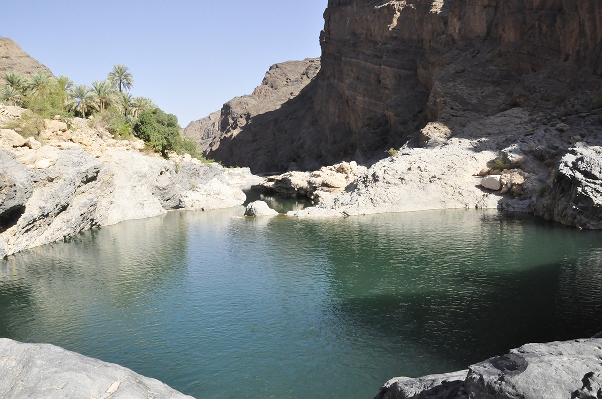 Tiwi’s waterfront real estateOn the way back to Muscat we also checked out Wadi Suwayah. This was one was a bit more difficult to get to than the other two (it was further into the mountains, after a long dusty, rocky road) but was worth it. After finally reaching the wadi, we were greeted with something more like a small lake. There wasn’t much exploring to be done in the area, which consists of the lake-like wadi surrounded by cliffisides, and a very small village, but the clear and apparently very deep waters, would be excellent for some cliff diving.