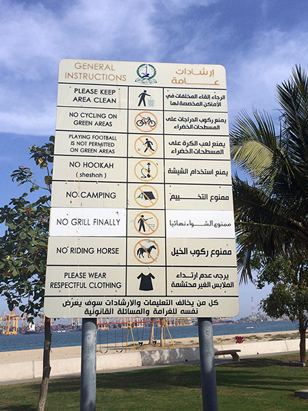 And a humorous sign at Khor Fakkan beach: “No grill finally”. Yes, finally, the ban I’ve been waiting for all this time.